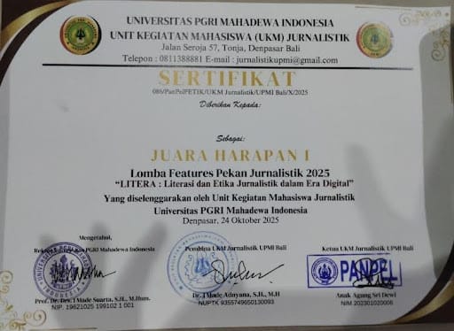 Charisya recently received a special opportunity to represent her school at the UPMI 2025 Journalism Week, a prestigious competition that brings together high school students from all across Bali.